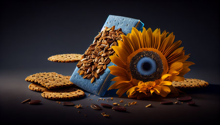 AI Generated. Sunflower and black seeds create a vibrant kitchen scene with natural textures and colors