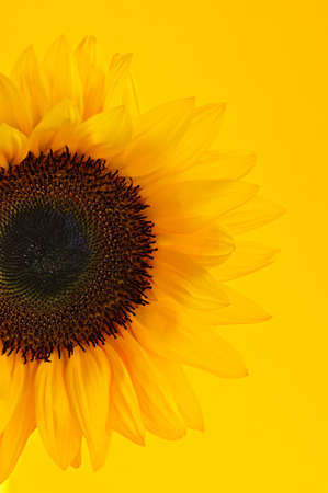 Close up of sunflower flower on yellow background
