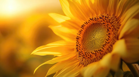 A stunning close-up of a sunflower with its large, bright petals and detailed center, capturing the warm, golden hues and natural beauty.