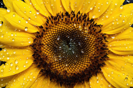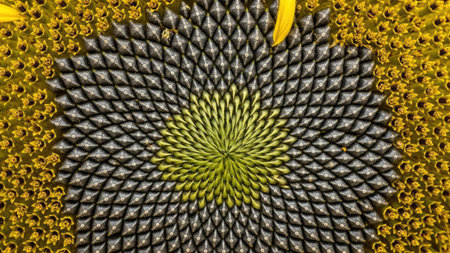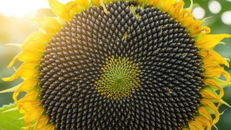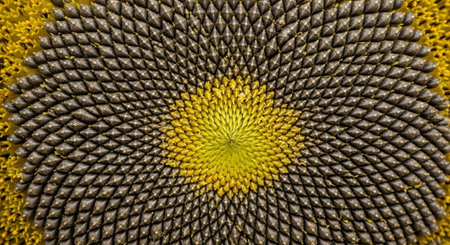 macro image of sunflower seeds in the head, created with generative ai