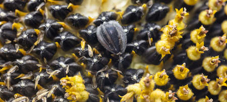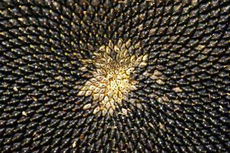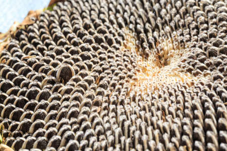 Seeds in a sunflower as a background. Close-up