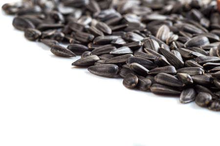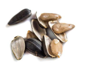 Sunflower seeds isolated on white background. Close-up shot.