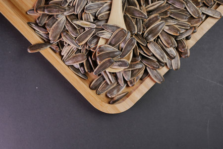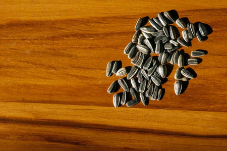 Close up of Sunflower seeds on a wooden table