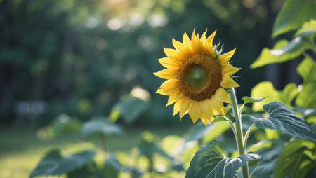 AI Generated. Sunflower blooms brightly amidst lush green leaves in a serene garden setting