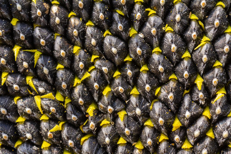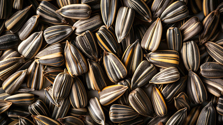 raw freshly harvested black and white sunflower seeds close up and macro background texture