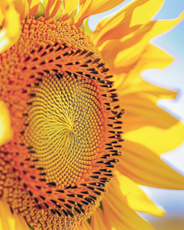 Closeup or macro shot of a sunflower in the summer light