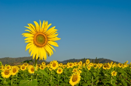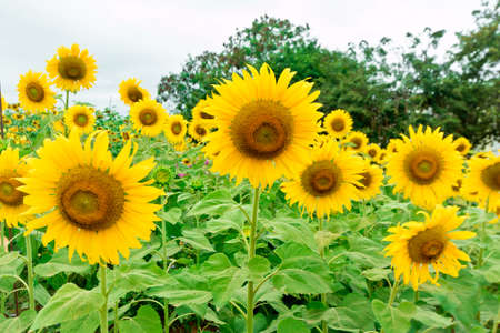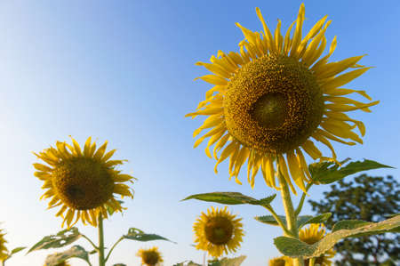 Sunflower field with blue sky background, Sunflower blooming in garden