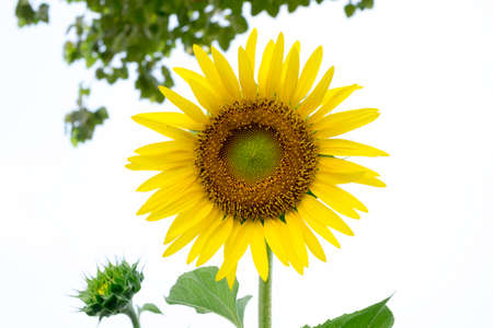 Sunflower on nature background. Sunflower blooming on the field on a bright sunny day . Close-up of sunflower. Sunflower natural background. Sunflower are blooming out. Blossom, not yet open, sunflower. flowers in the nursery. Green Sunflower on natural background. Sunflower blooming in garden