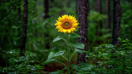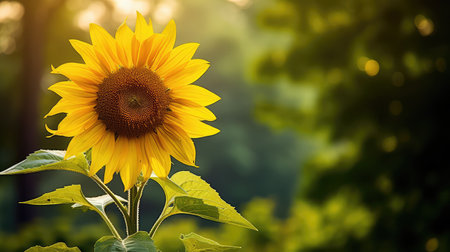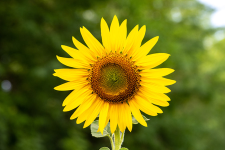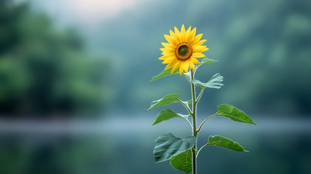 A stunning yellow sunflower in full bloom against a blurred green background, capturing the essence of tranquility and natural beauty.
