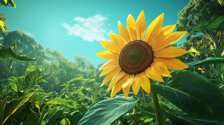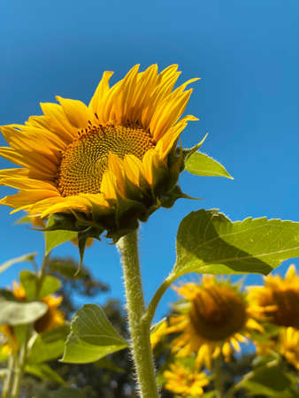 A Bright and Beautiful Sunflower in Full Bloom Against a Striking Blue Sky Above