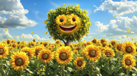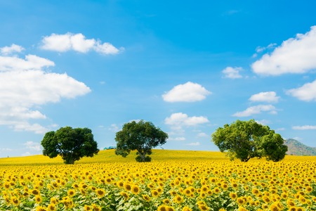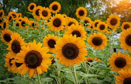 Sunflowers garden. Sunflowers have abundant health benefits. Sunflower oil improves skin health and promote cell regeneration.