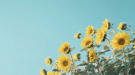 Bright sunflowers in full bloom, with a clear sky background for text space. Vibrant summer imagery