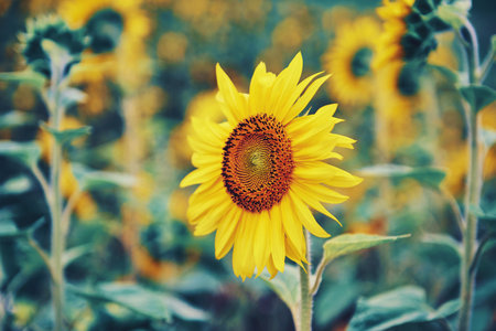 Toned image of sunflower, nature summer background