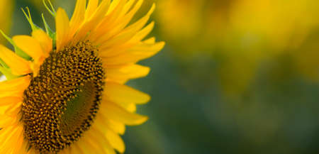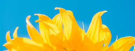 Banner part of sunflower sun against the background of the blue sky