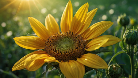 Vibrant sunflower in a field
