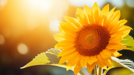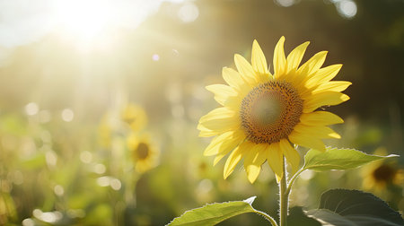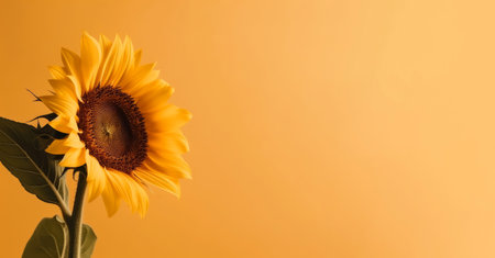 Sunflower plant banner. Sunrise warm color. Generate AI
