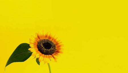 Bright Sunflower on yellow background. Creative Summer Composition. Close-up, copy space