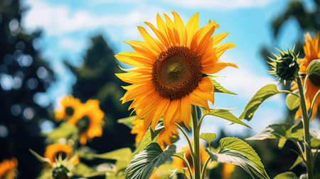 AI Generated. Sunflower in sunlight with blue sky background