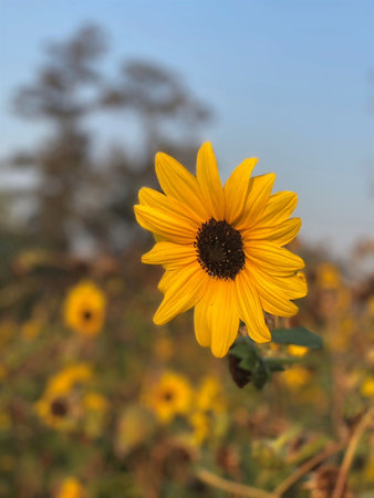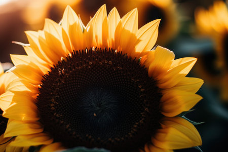 Vibrant sunflower in a field at sunset