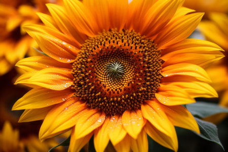 sunflowers in the style of zeiss planar t 80mm f2.8 lens, featuring nature-inspired compositions with water drops, spirals, and vibrant orange and bronze colors. these high-definition wallpapers and desktop backgrounds showcase eye-catching details in matte photos. ai generated