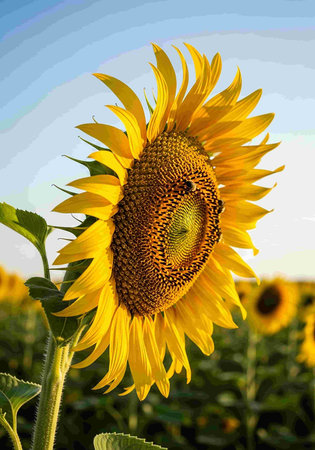 Large sunflower isolated against a sunny sky