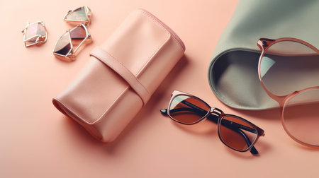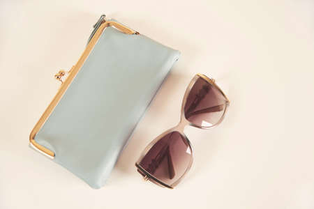 Sunglasses and purse accessories. Fashion background