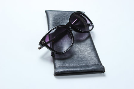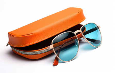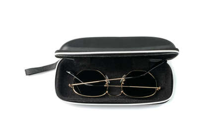 closeup of a sunglasses in open case, studio shot