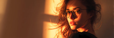 Woman in Eyeglasses in Dramatic Golden Hour Sunlight