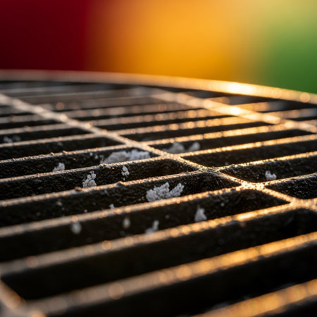Grilled meat on metal grate, summer feast generated by artificial intelligence