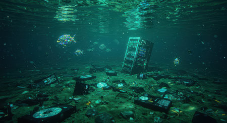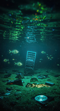 An ocean of digital garbage, overflowing with data fragments and an endless stream of information.