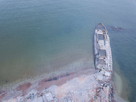 Aerial view of shipwreck near Crimean coast.