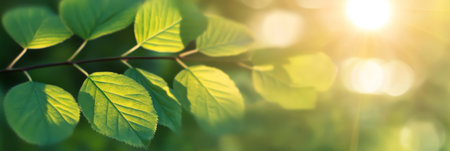 Sunlit leaves in a soft focus forest, nature serenity concept