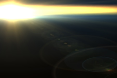 Sunrise with lens flare effect. Abstract natural sunbeams.