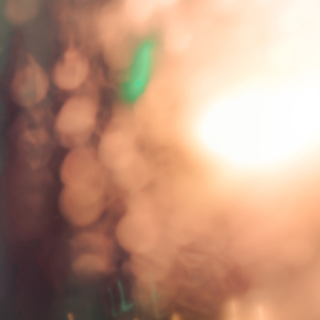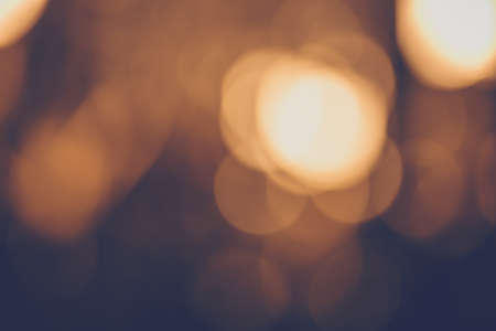 Defocused blurred bokeh abstract background, gold - yellow lights on dark, vintage toned