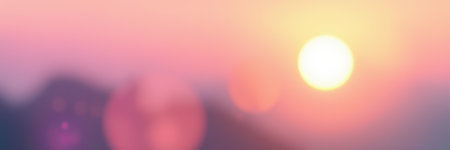 Abstract banner background image of sunset or sunrise sky with warm colors lens flare bokeh