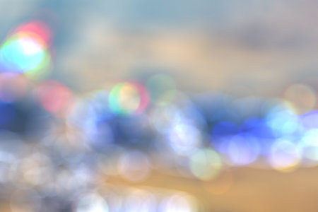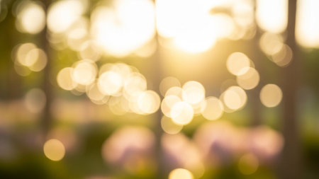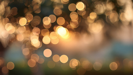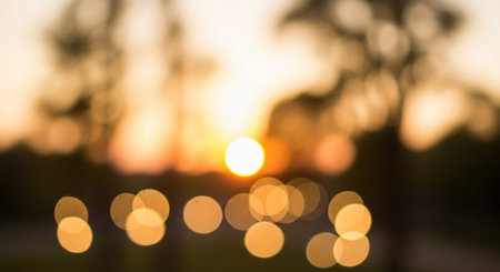 A beautiful array of soft bokeh lights in warm hues captures the essence of a serene sunset, creating an abstract and dreamy atmosphere perfect for any project.