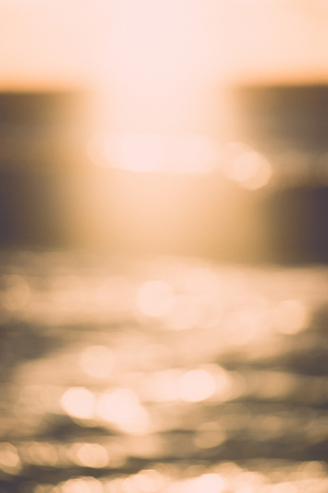 out of focus blur background with sea water in sunset light - retro vintage film effect