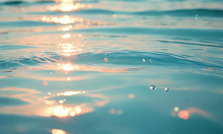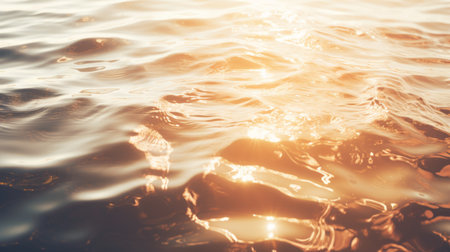 A tranquil image of gentle water surface reflecting soft sunlight, creating serene ripples and calming patterns that evoke peace and relaxation during golden hour.