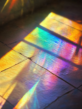 Vibrant Rainbow Light Refraction on Tile Floor Abstract Background art glow lens prism shine image