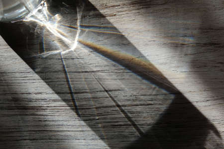 Wooden gray abstract background with light and shadows caustic effect. Light passes through a glass. Blurred light refraction texture overlay. effect like a space theme