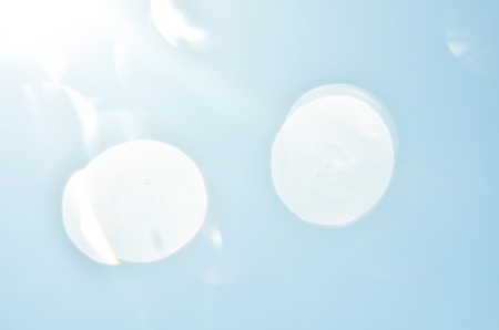 sun rays. lens flare. bokeh light. Defocused blue orange color shiny glowing round flecks spotlight beam glare art illustration abstract background.