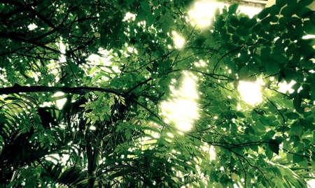 Leaf texture background with sun light and flare light in Thailand. Abstract natural background.