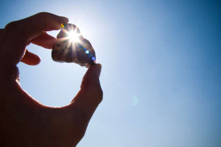 Hand holds stone with hole