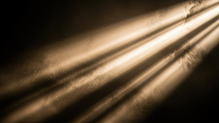Abstract image showcases strong beams of light piercing through a dark background. The light is a warm yellow color. The composition features an interplay of shadows. This can be suitable for a variety of projects, including advertising or creative designs. The image employs strong contrast.