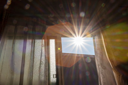 Golden sunset through a window, sunbeams
