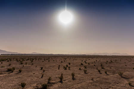 Sunset in the desert, Concept for drought, heat or global warming. 3d rendering