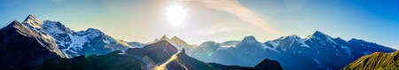 Mountain landscape panoramic view with sunlit.
