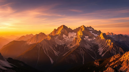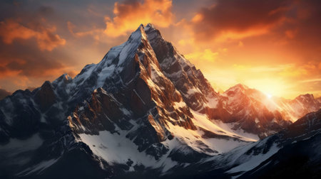 Stunning sunset illuminating snow-capped mountains.