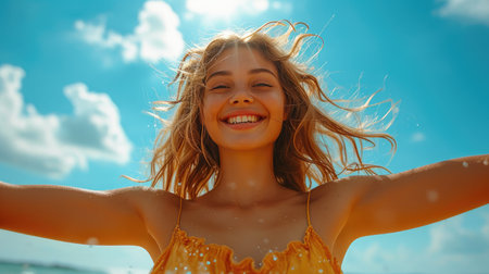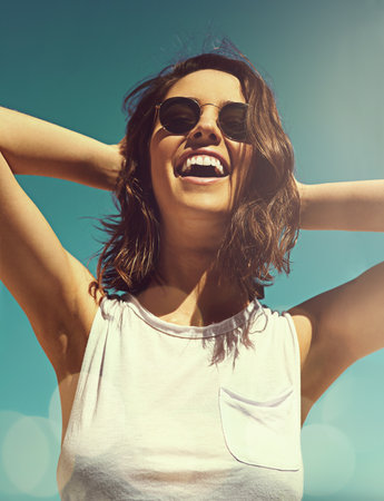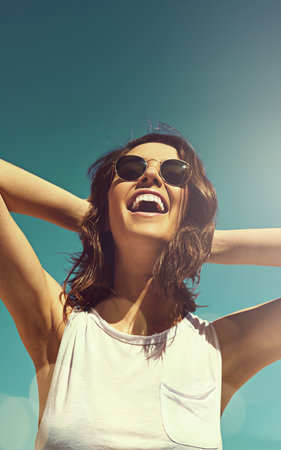 Midday Delight: Woman Reveling in Sunny Summer Day