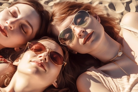 Golden Summer Memories: Three Young Friends Bask in the Sunshine on a Sandy Beach Getaway